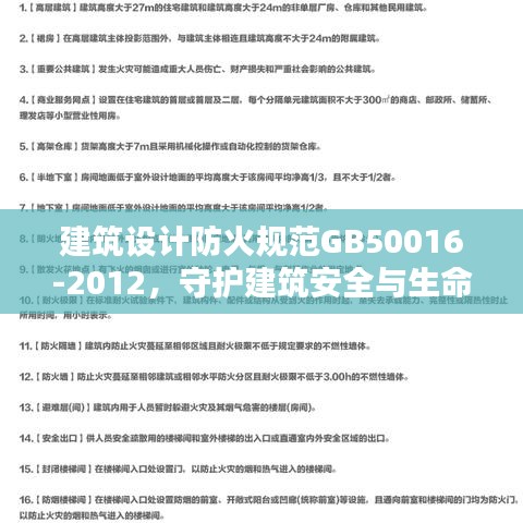 隨著城市化進(jìn)程的加速,建筑的數(shù)量和規(guī)模在不斷擴大,建筑設(shè)計防火規(guī)范的重要性也日益凸顯,作為保障建筑安全與人民生命財產(chǎn)的重要規(guī)范,GB50016-2012建筑設(shè)計防火規(guī)范在我國的建筑行業(yè)中發(fā)揮著舉足輕重的作用,本文將從多個方面詳細(xì)介紹這一規(guī)范的內(nèi)容及其在建筑安全領(lǐng)域的應(yīng)用。